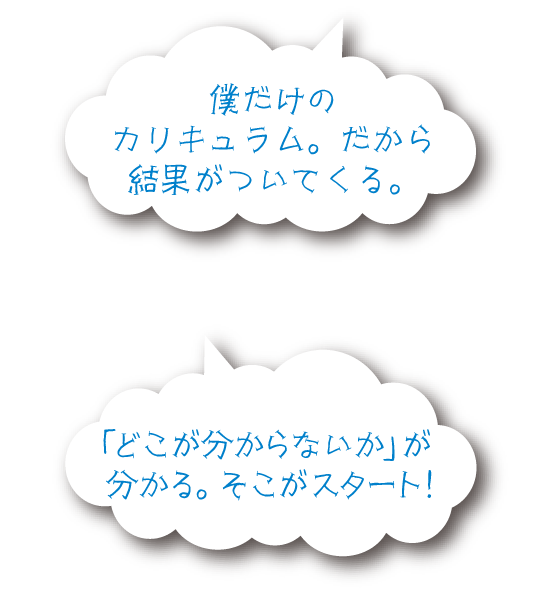 経験豊富な先生と一緒に、自分のペースで「小さな目標」をクリアし、着実に学力向上を目指しましょう!