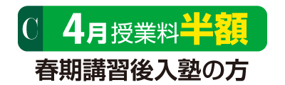 | 新小3~ 新中3 | 〇本科 英数特化 1対3 : 2科目 アイコース: 2科目 | 1対3 【 英語・数学 】 アイコース 【 英語・数学 】 | 33,000円 ↓ 16,500円 |